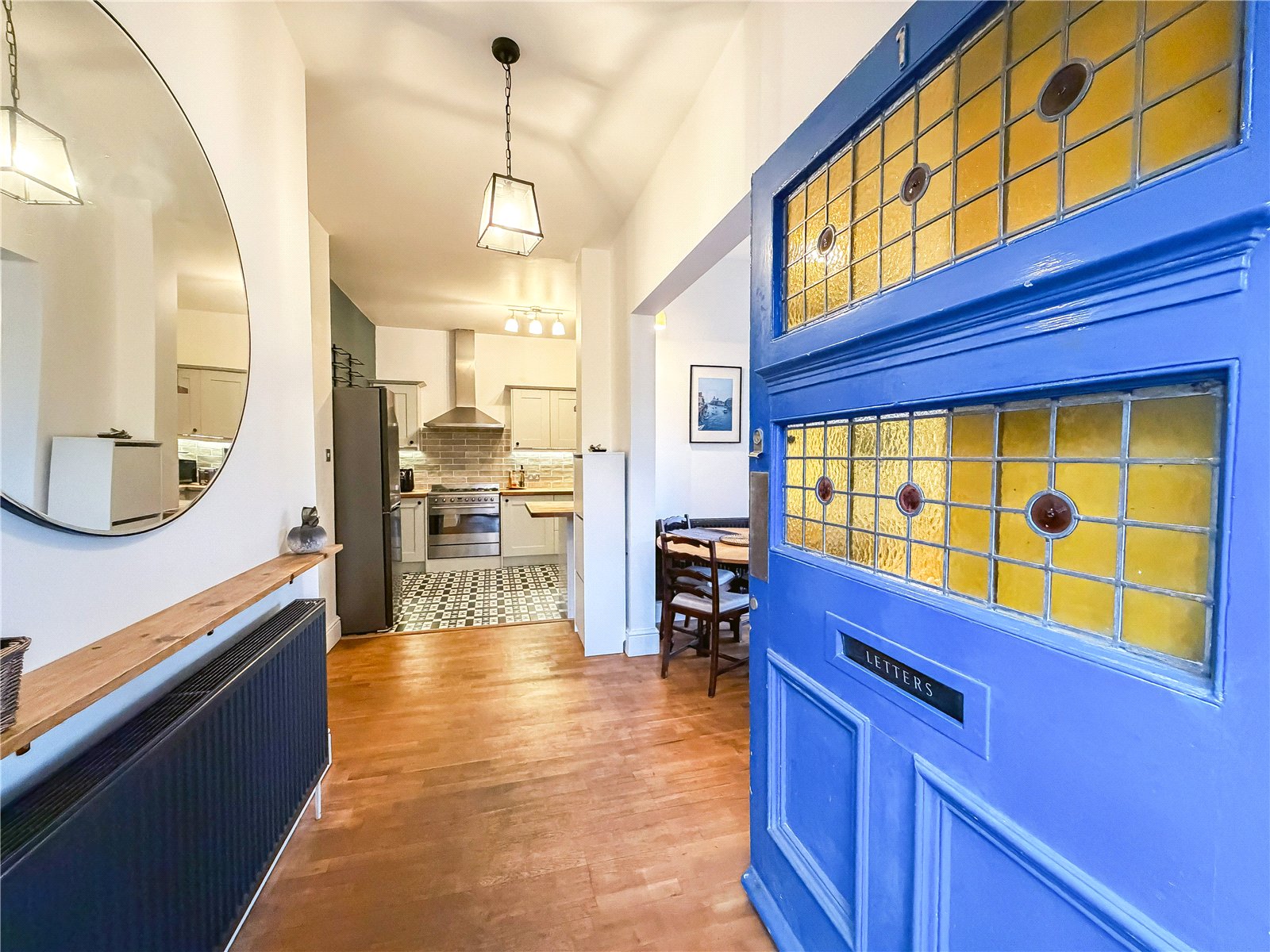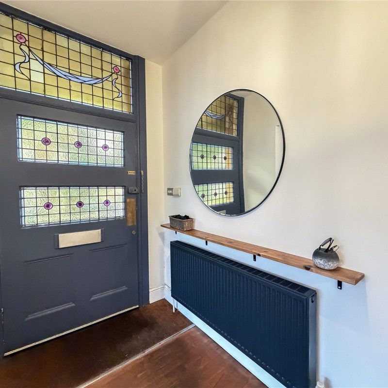 Entered through the 7ft period style door with stained glass panels, the accommodation reveals a magnificent open plan living room/dining room with ceilings measuring a height of 9ft and a large bay window, flooding the room in natural light. There is a feature inglenook area with fireplace. The separate kitchen/breakfast room is fitted with a range of stylish bespoke wall and base level units with breakfast bar, all complimented by wood tops and integrated appliances.