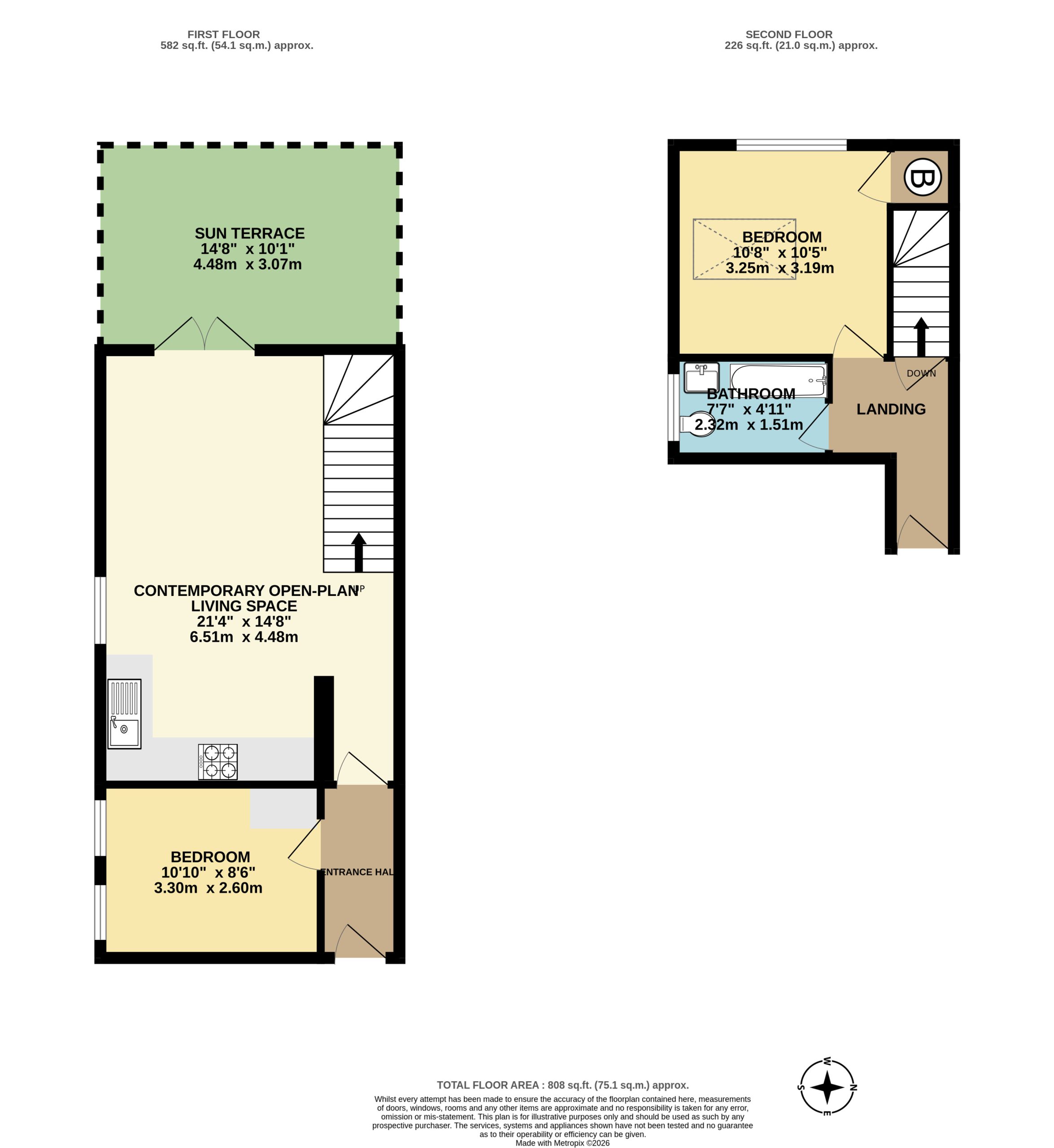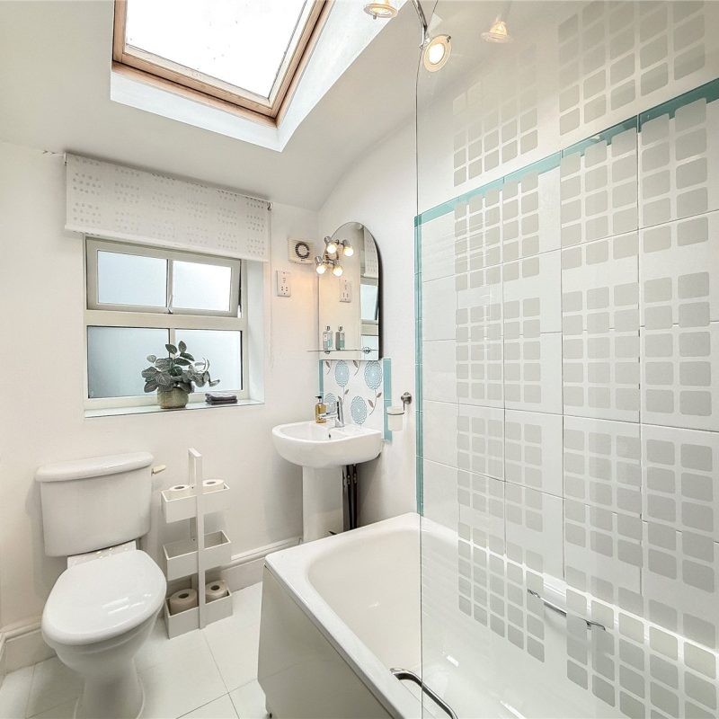 Stairs rise from the living room up to the second floor which is occupied by the principal bedroom bathed in light from the rear window and roof light above. The property is served by a stylish bathroom.