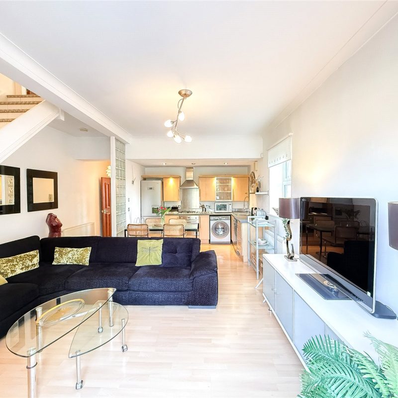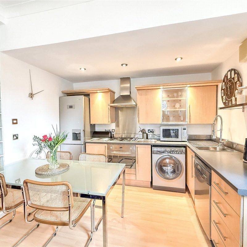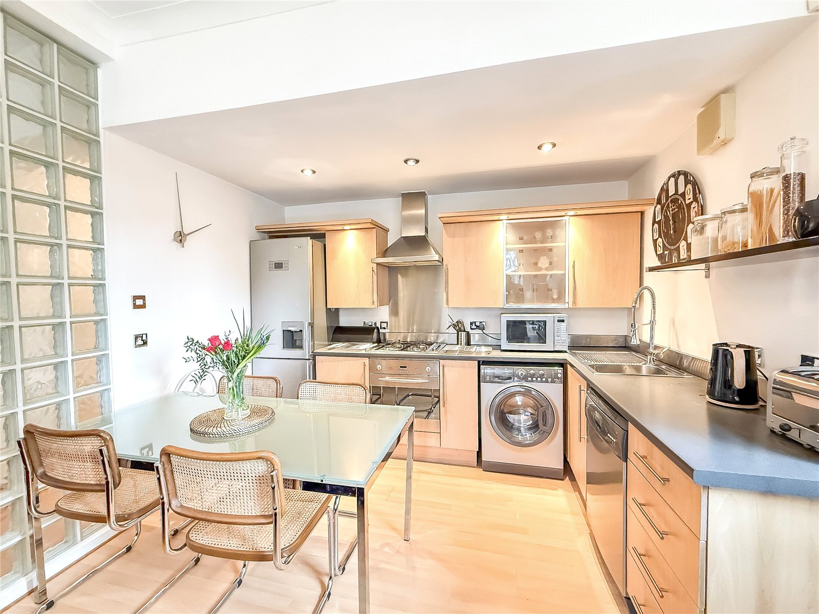 The bright and spacious accommodation consists of an entrance hall. Opening to the right of the hallway is a well-proportioned double bedroom. The hallway continues through to the spectacular open-plan contemporary living space; incorporated is a modern kitchen fitted with a selection of units complemented by granite effect tops with space for appliances. There is ample space for living and dining furniture creating the perfect environment for entertaining and dining. The room is flooded in natural light from the double doors opening out to the wonderful Westerly facing 147 sq.ft walk-out sun terrace – the perfect space for outdoor entertaining in the warmer months.