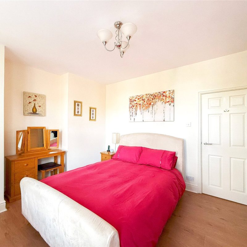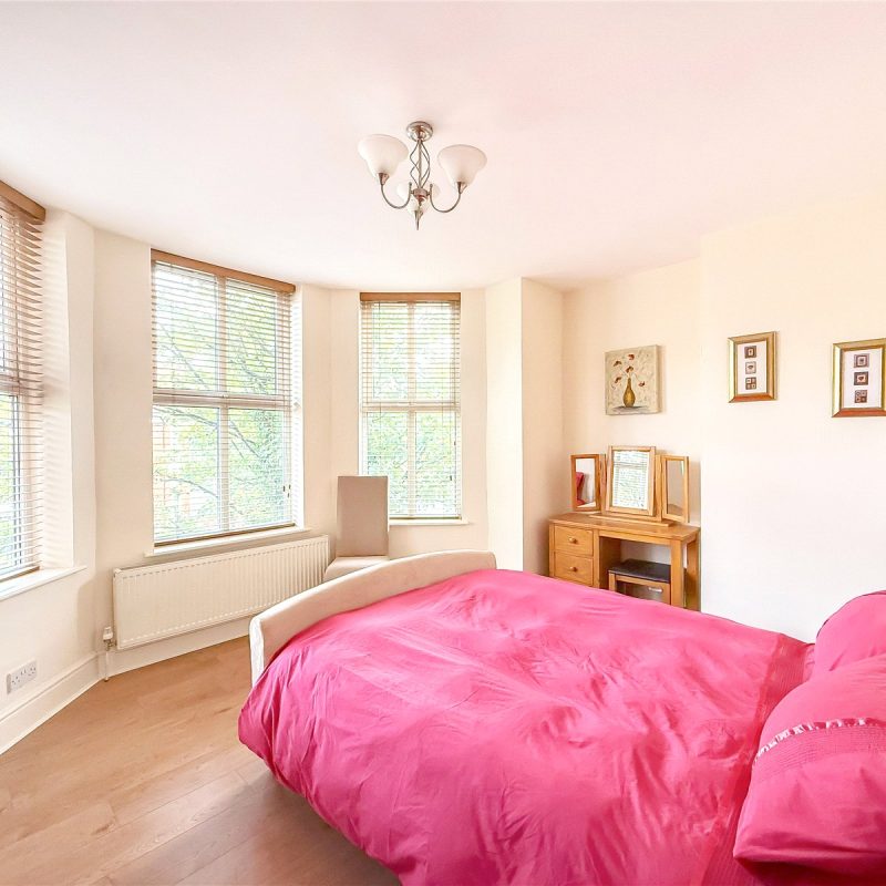 There is a generous double bedroom with a large bay window flooding the room with natural light,