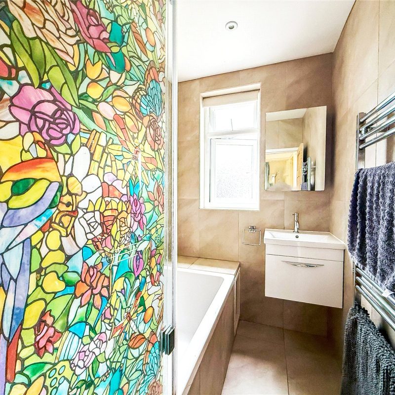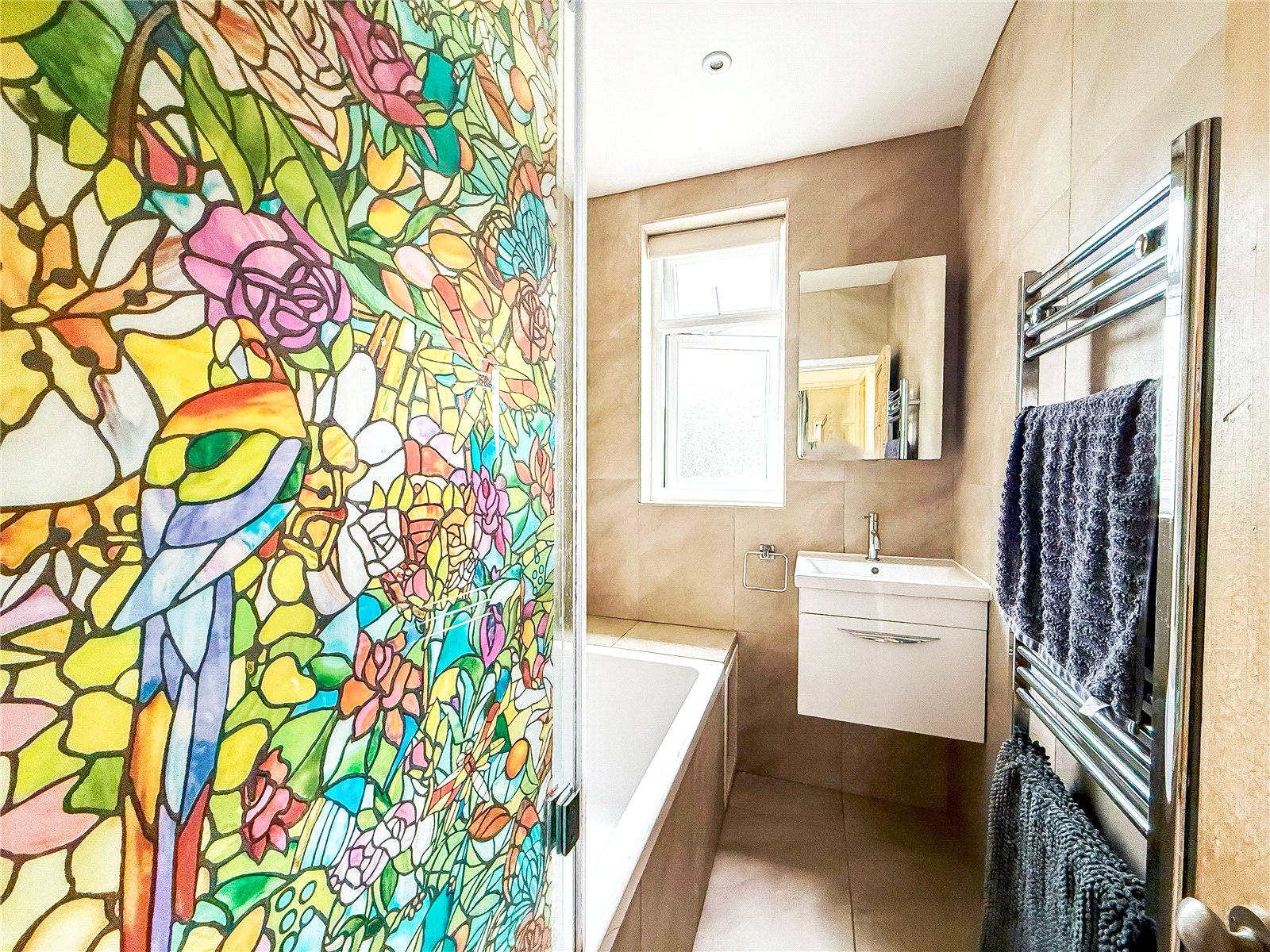 The first floor reveals three bedrooms providing two double bedrooms, with the principal bedroom having bespoke fitted wardrobes and overlooking the attractive rear garden. There is a further smaller double bedroom, also with bespoke fitted wardrobes. The property is served by a contemporary bathroom with separate WC