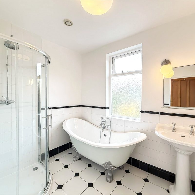 The first floor reveals two large double bedrooms and a well-proportioned single bedroom, all served by the elegant vintage styled bathroom.