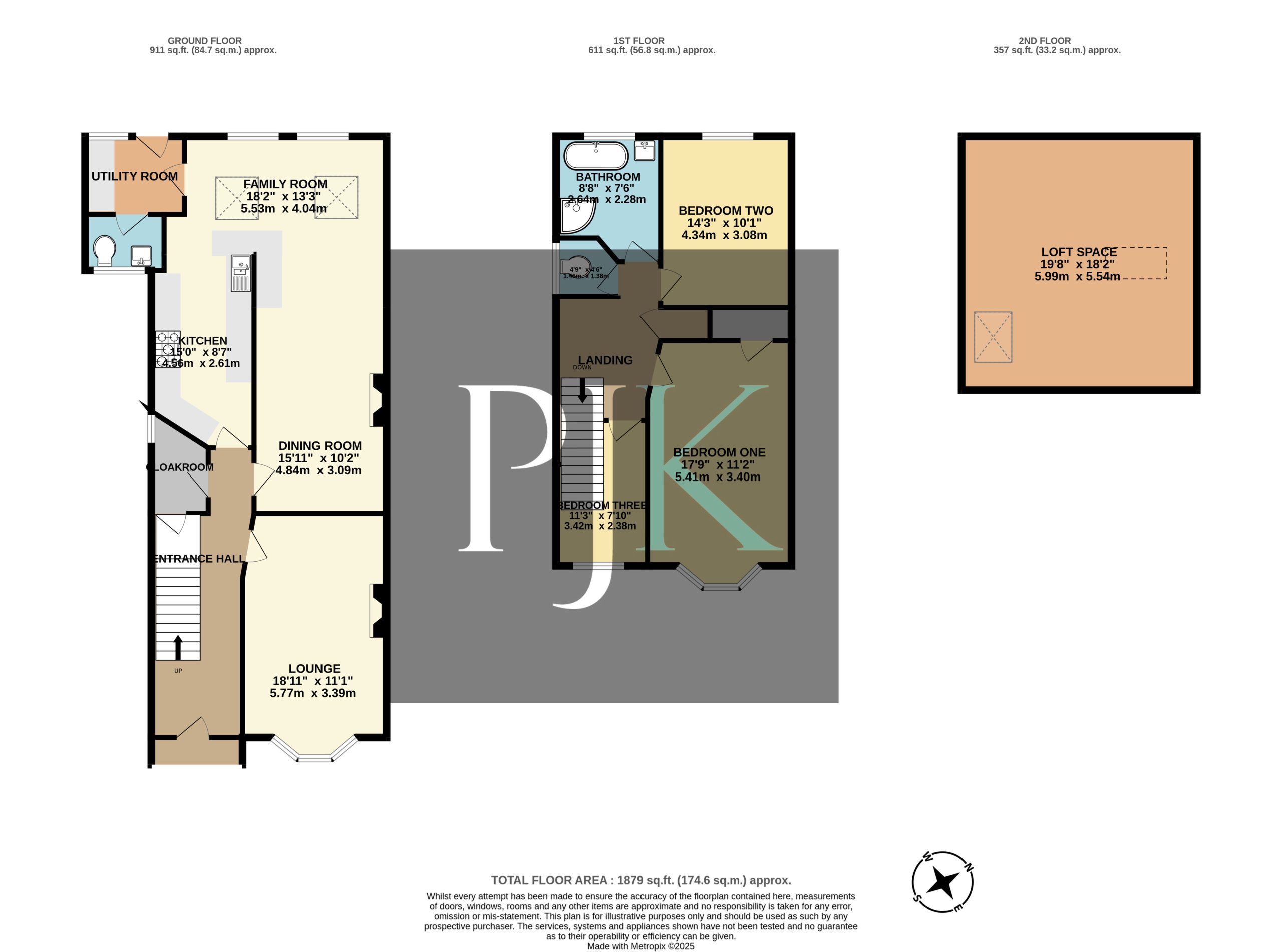 A ladder from the first floor landing, provides access up to the boarded loft which creates an ideal home office.