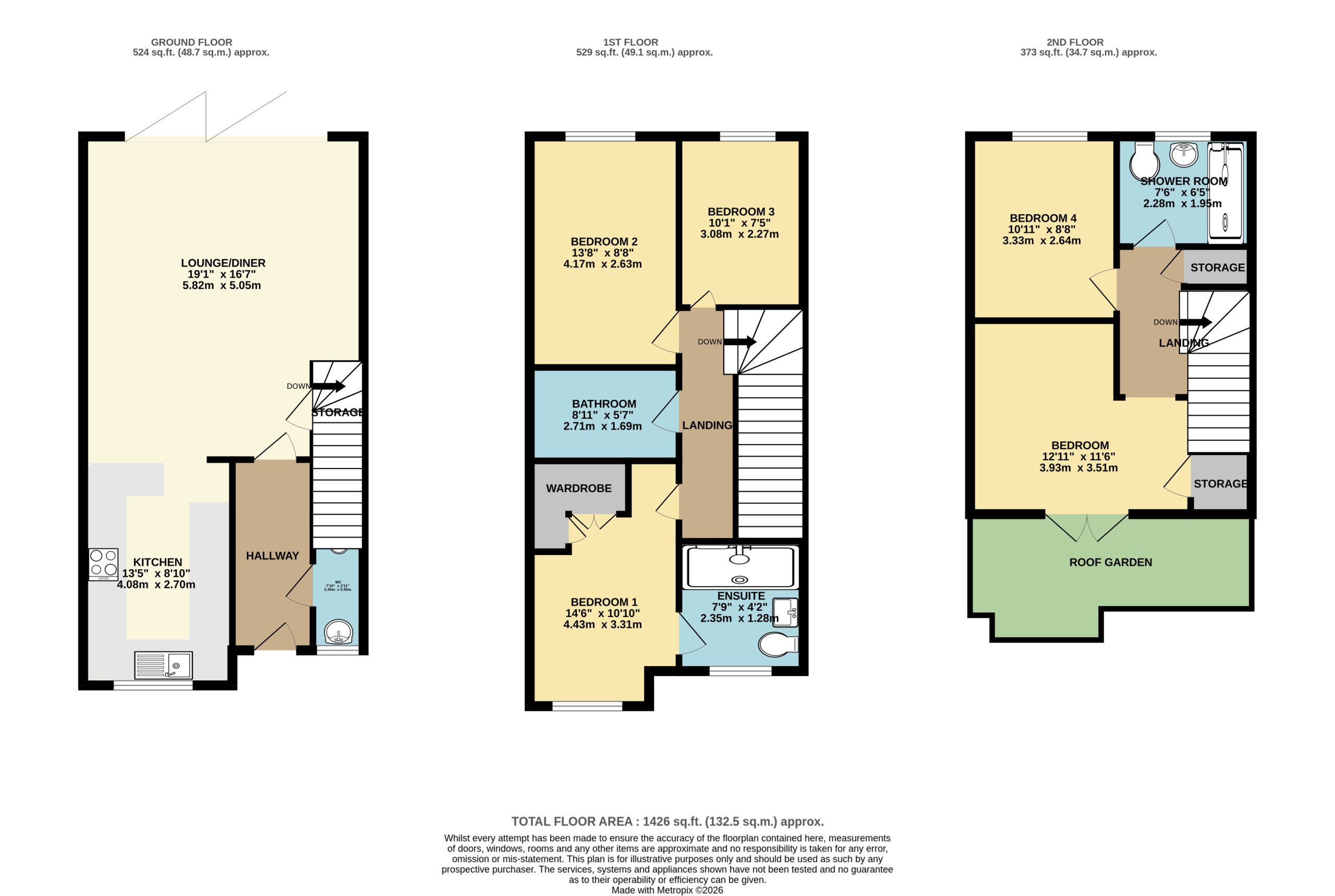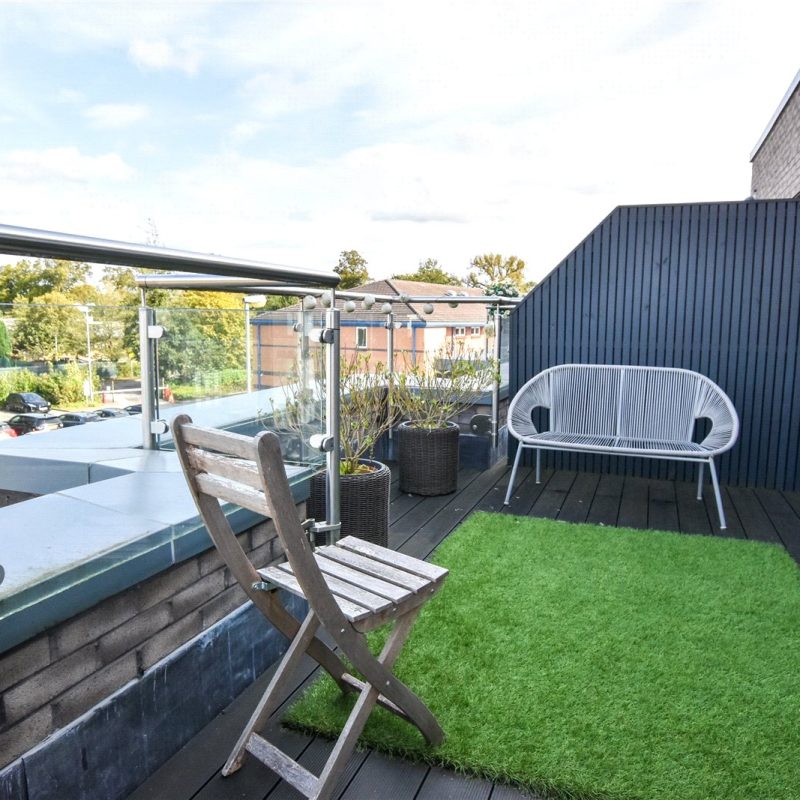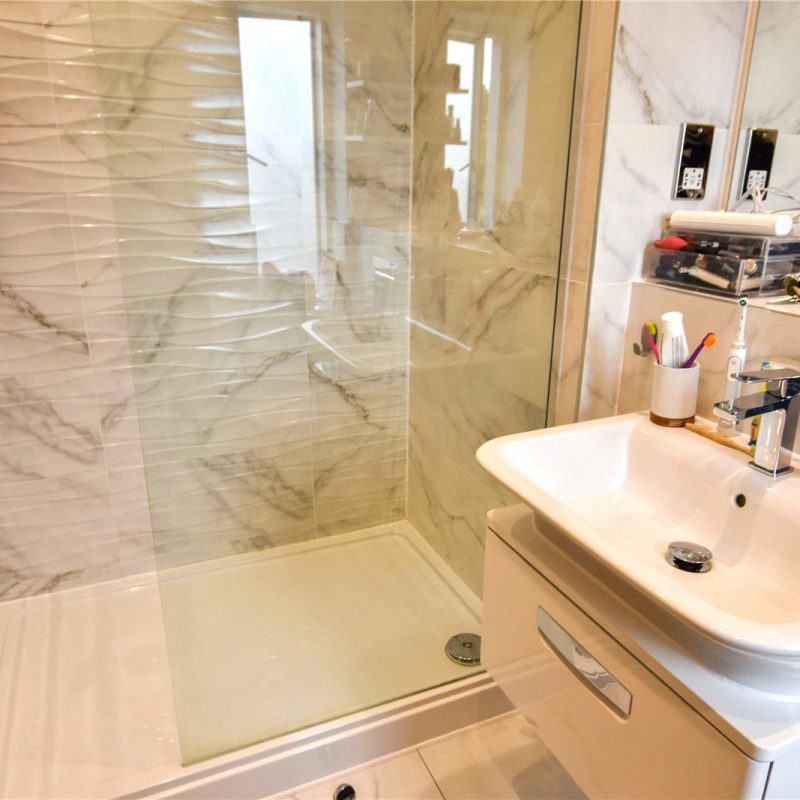 To the first floor there are three bedrooms, with bedroom one sitting to the front of the property and benefits from fitted wardrobes and en-suite with large shower cubicle, wash hand basin, toilet, and large wall mounted mirror, and a frosted window to the front aspect. The two further bedrooms sit to the back of the property. There is also a large family bathroom, comprising of bath with handheld shower, wash basin, toilet and large wall mounted mirror. There is also a useful storage cupboard on the landing. Floors lead up to the second floor, revealing a further lounge, bedroom and shower room with large shower cubicle, wash basin and toilet. The lounge boasts large patio doors leading to the decked roof terrace, with glass balcony and seating area.