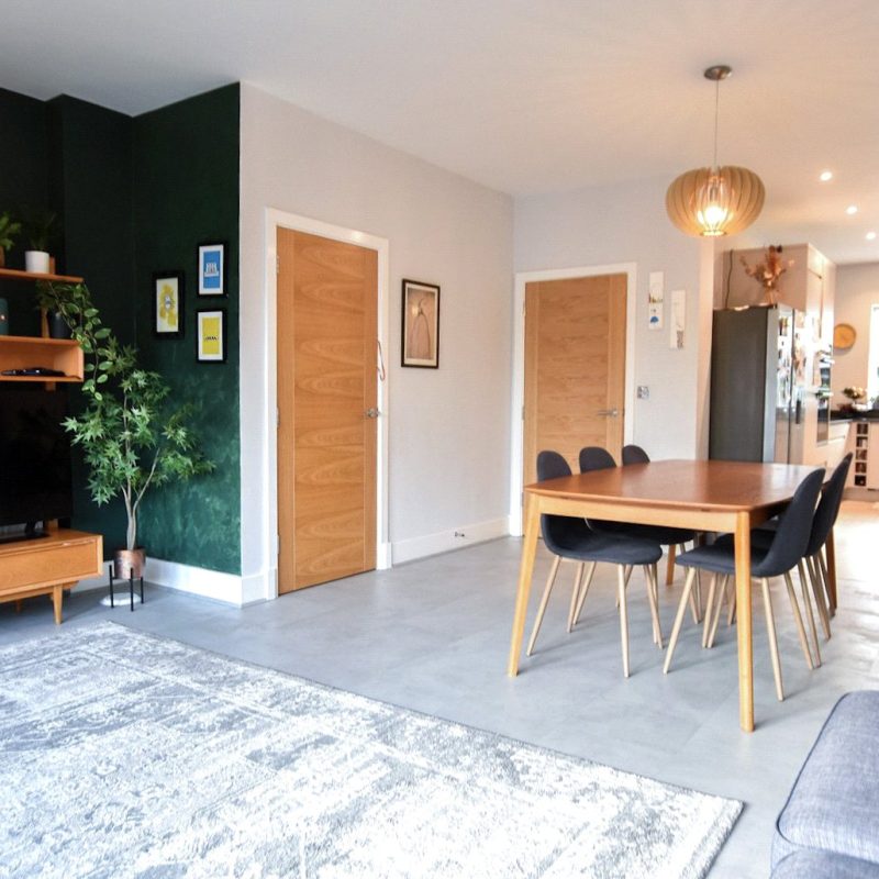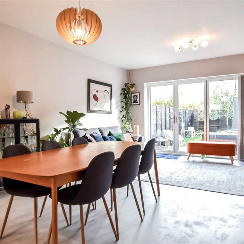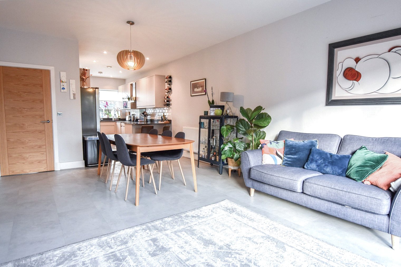 This stunning property extends to approx. 1426 sq ft and comprises of entrance hallway, W/C with toilet and wash hand basin, open plan lounge/diner and kitchen. The spacious open plan lounge/diner sits to the rear aspect of the property, with a large storage cupboard, tiled flooring and large tri-fold doors leading to the rear garden. The living/dining room has ample space for free standing living/dining room furniture. The kitchen has ample base and eye-level units with breakfast bar with integrated microwave, double ovens, and induction hob with extractor over and washing machine, a breakfast bar offers a seating area for two bar stools and a window looks out to the front aspect of the property.