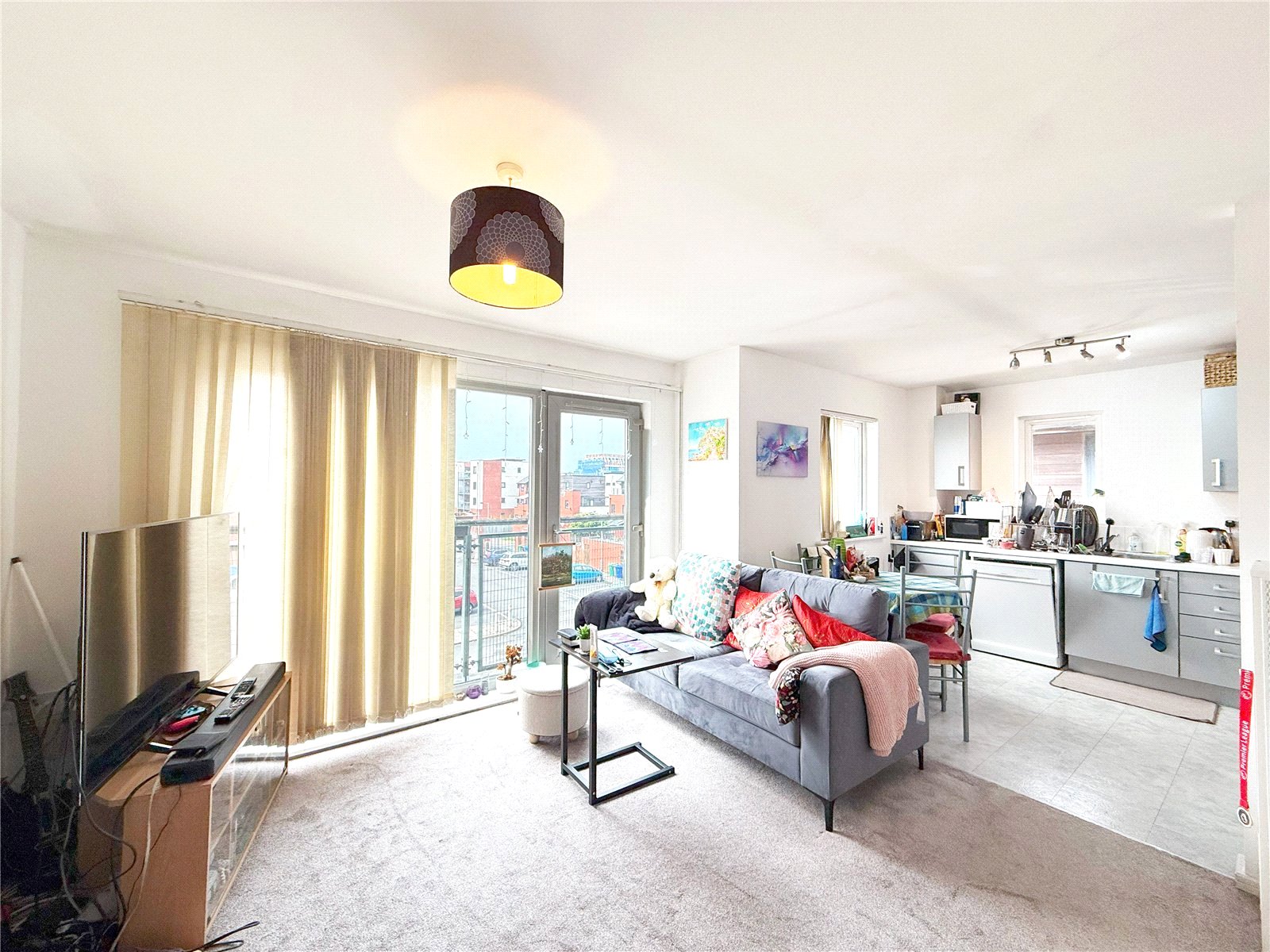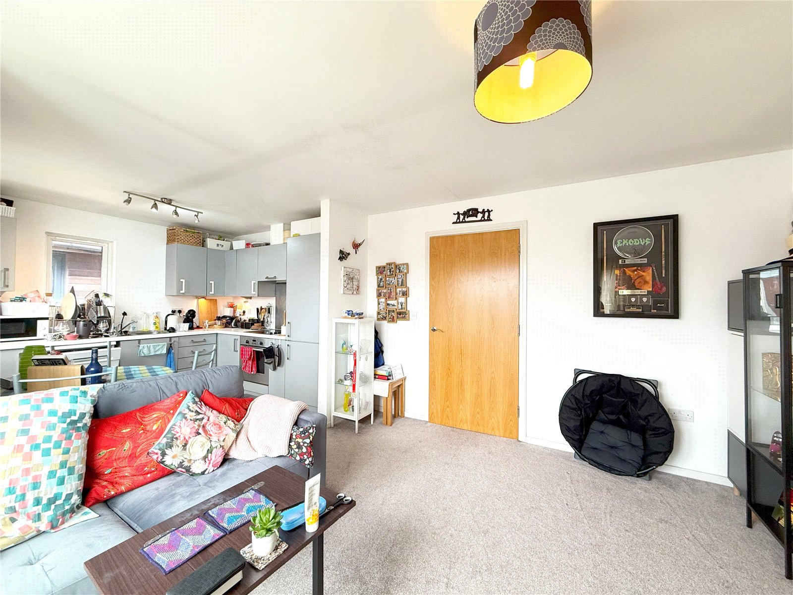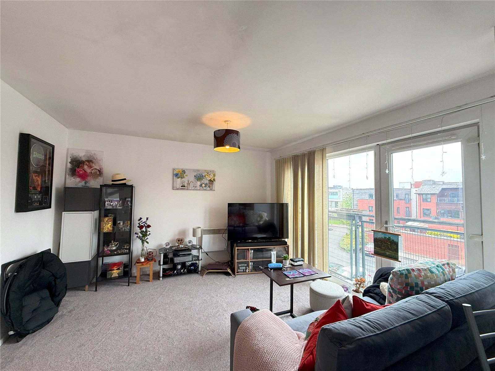 The accommodation reveals an entrance hall with utility cupboard. There is a bright and spacious living room with double doors opening onto the Juliette balcony which floods the room with natural light. Incorporated into the living room is the contemporary kitchen fitted with a range of base and wall units with integrated appliances.