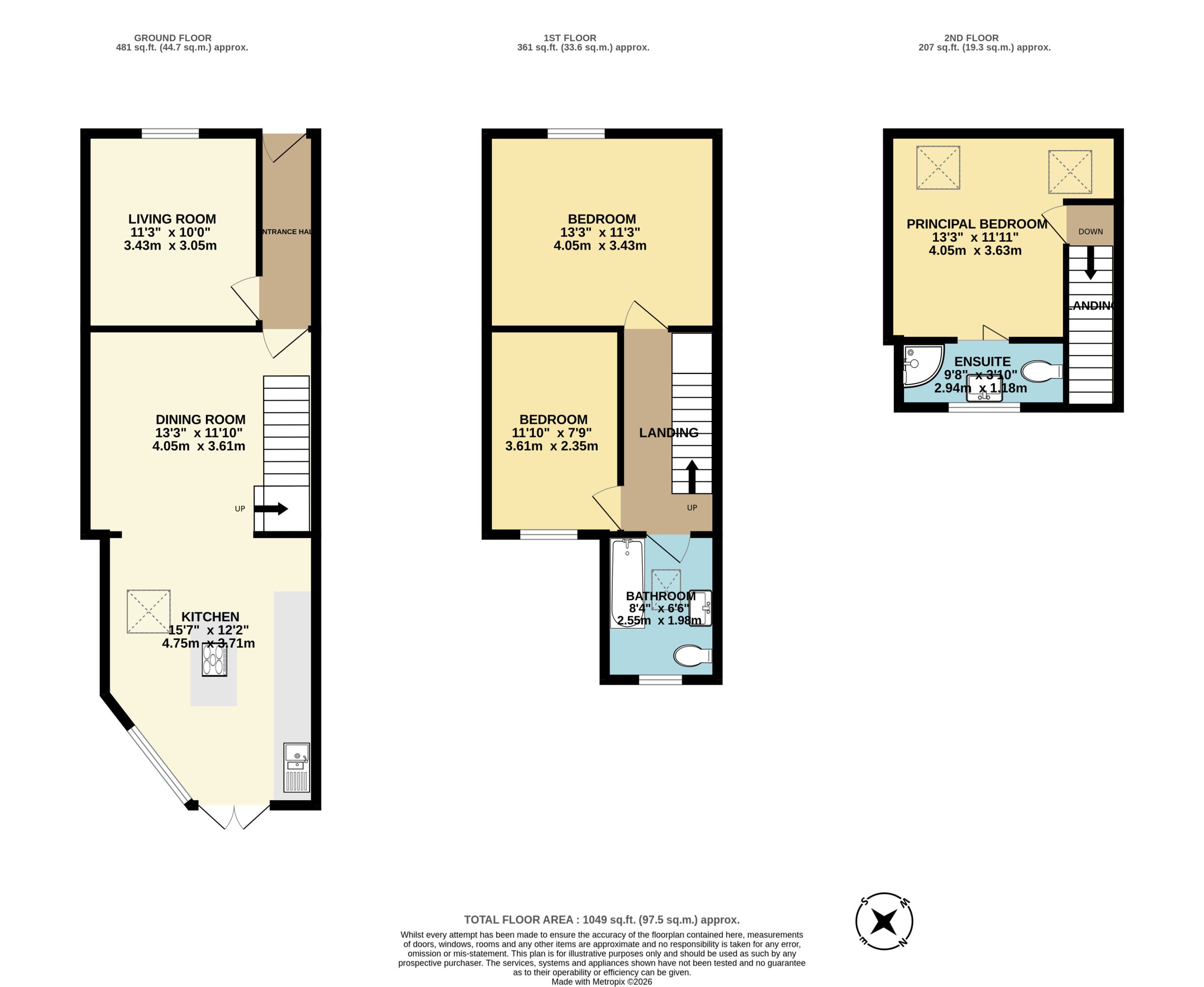 The second floor is occupied by the principal suite with ensuite bathroom.
