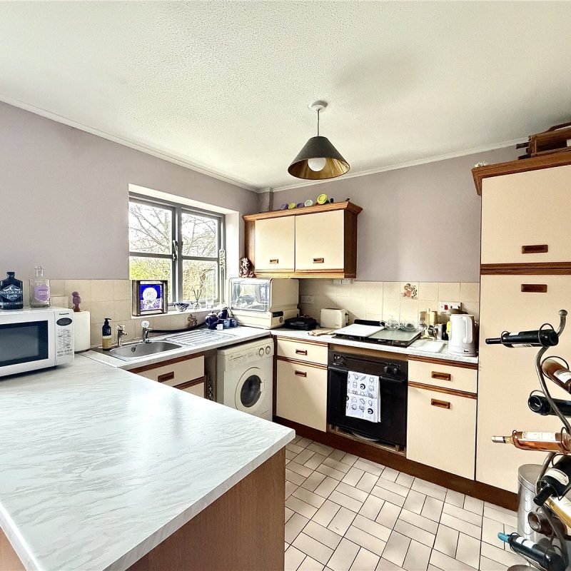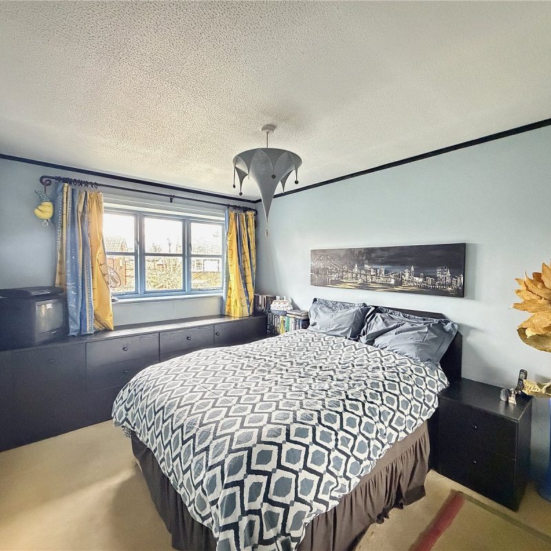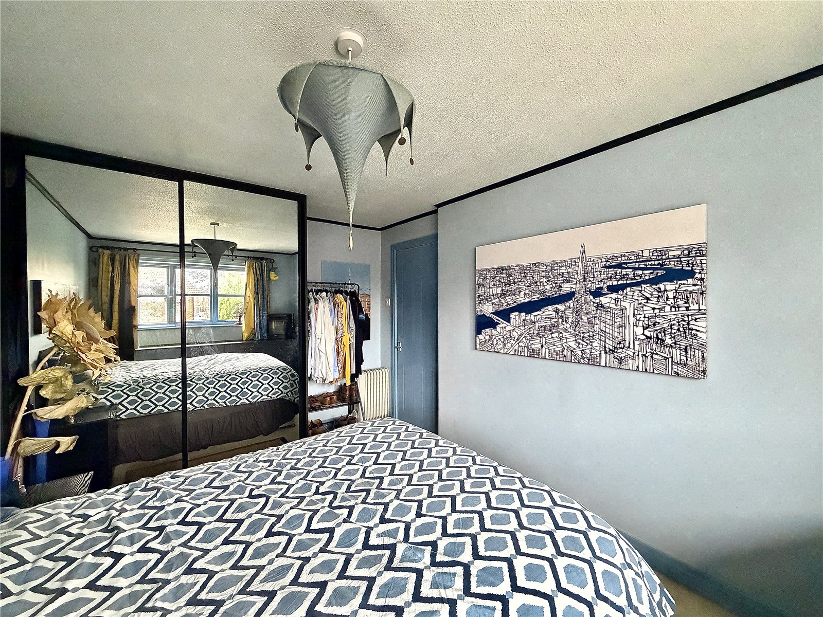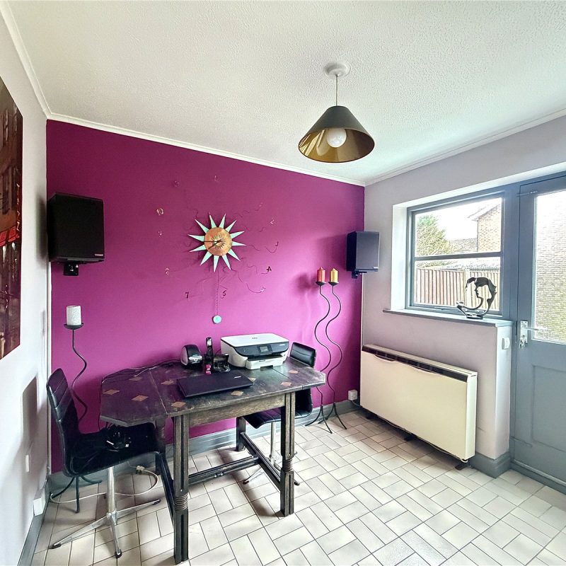 Accessed at the side of the property, the accommodation consists of an entrance hall, opening into the bright and spacious living room, overlooking the garden frontage. To the rear is the open-plan dining kitchen, fitted with a selection of units with breakfast bar. There is ample space for a dining table and chairs, creating the perfect spot for informal dining. The room is flooded in light from the two windows and patio door opening out to the Southerly facing garden.