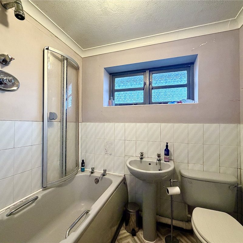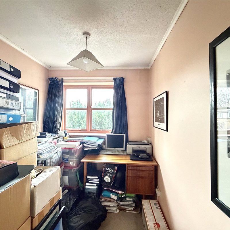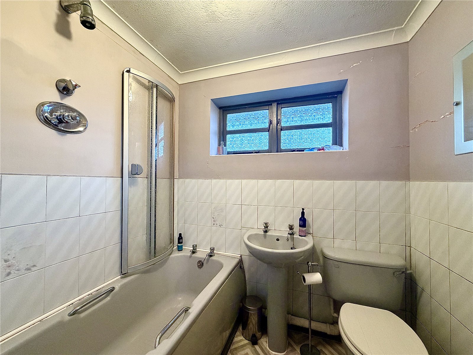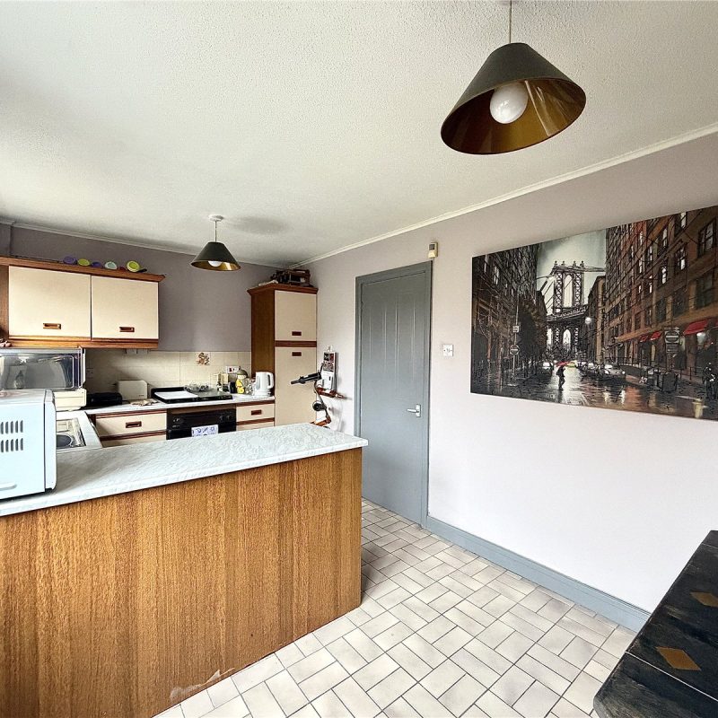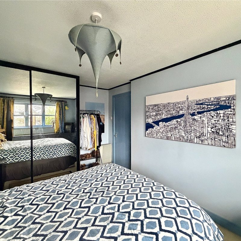 Accessed at the side of the property, the accommodation consists of an entrance hall, opening into the bright and spacious living room, overlooking the garden frontage. To the rear is the open-plan dining kitchen, fitted with a selection of units with breakfast bar. There is ample space for a dining table and chairs, creating the perfect spot for informal dining. The room is flooded in light from the two windows and patio door opening out to the Southerly facing garden.