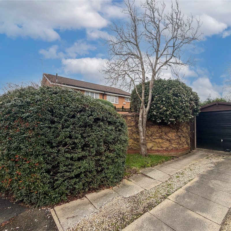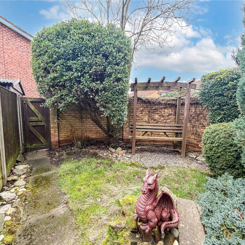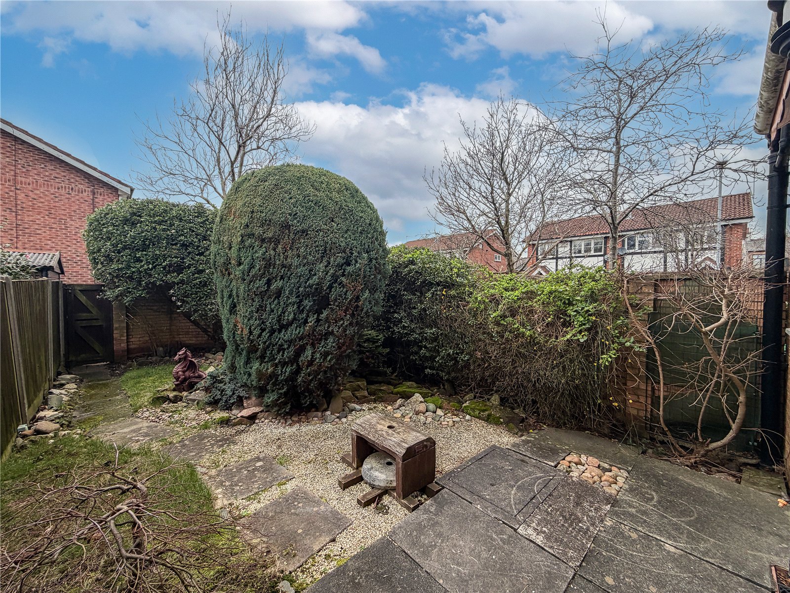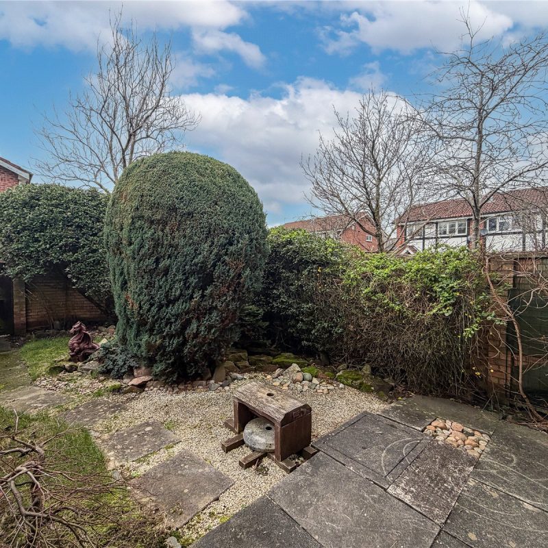 The property occupies a corner plot, surrounded by established trees and shrubs To the rear is a driveway providing off road parking and access to the detached garage. The rear landscaped garden enjoys a South Westerly aspect, with a flag stone patio, area of lawn and separate seating area, all fringed by tall fencing and mature trees and plants.