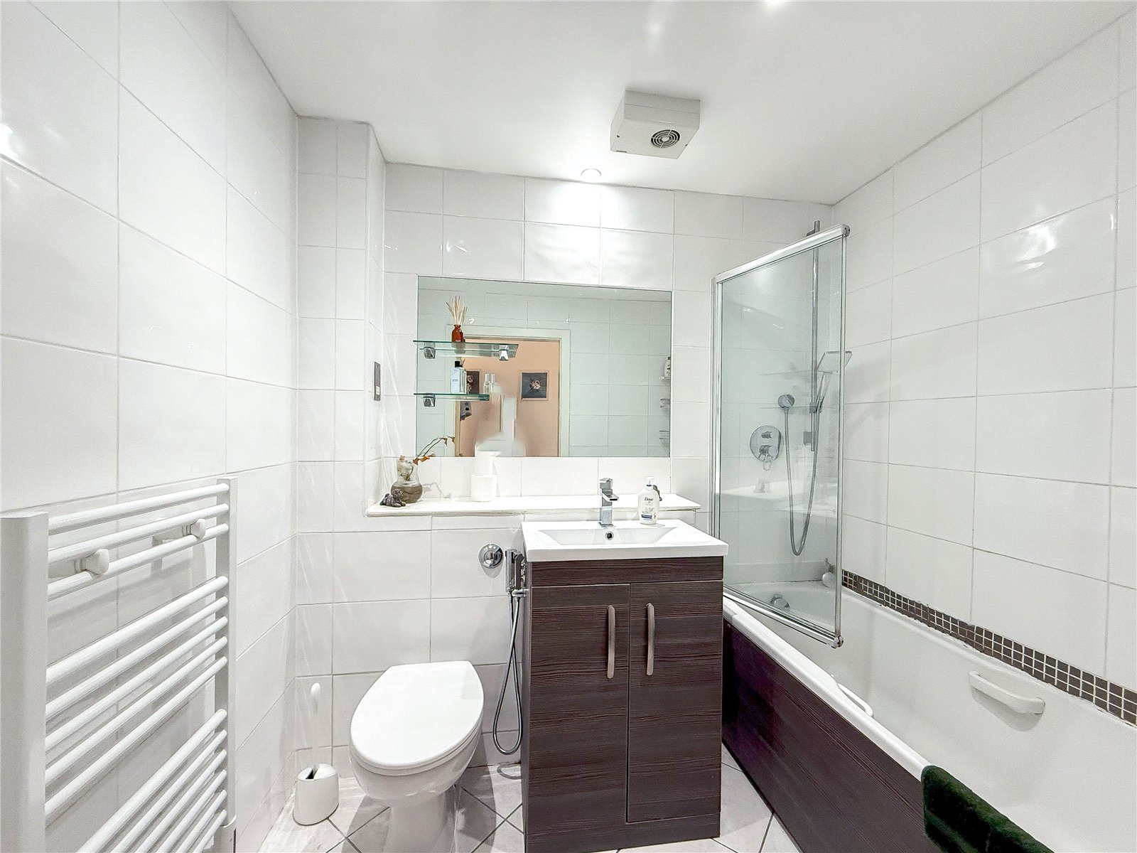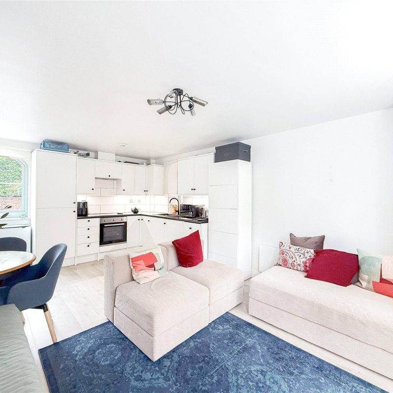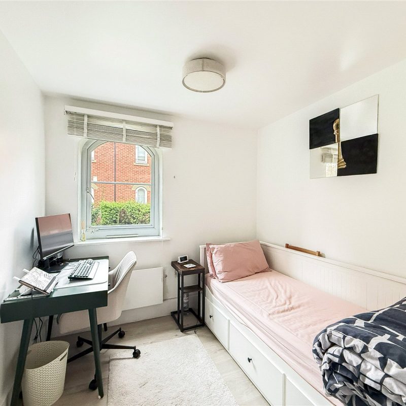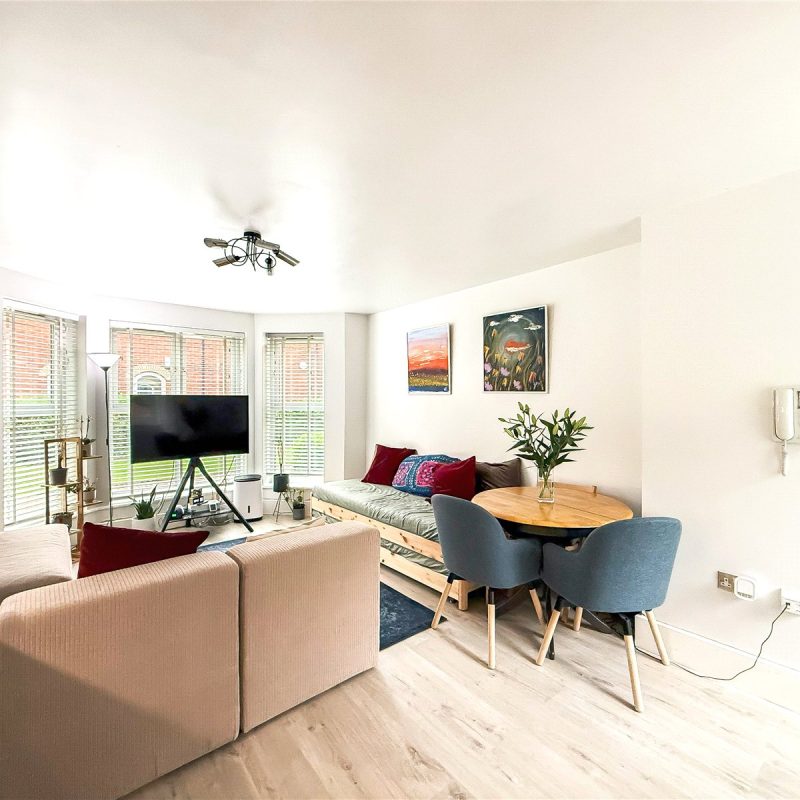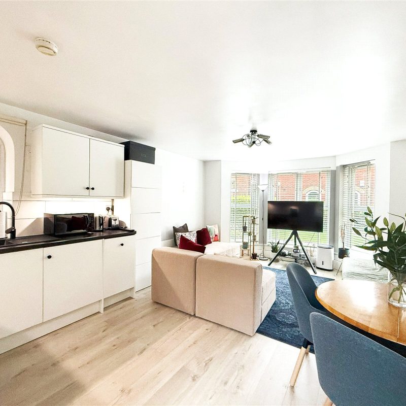 The apartment sits to the rear of the development and is accessed via a communal entrance shared with just one other apartment.