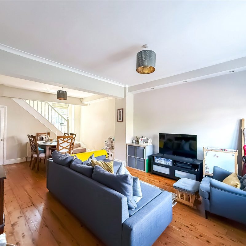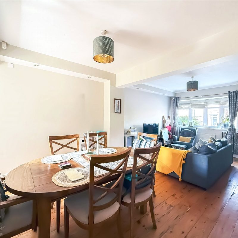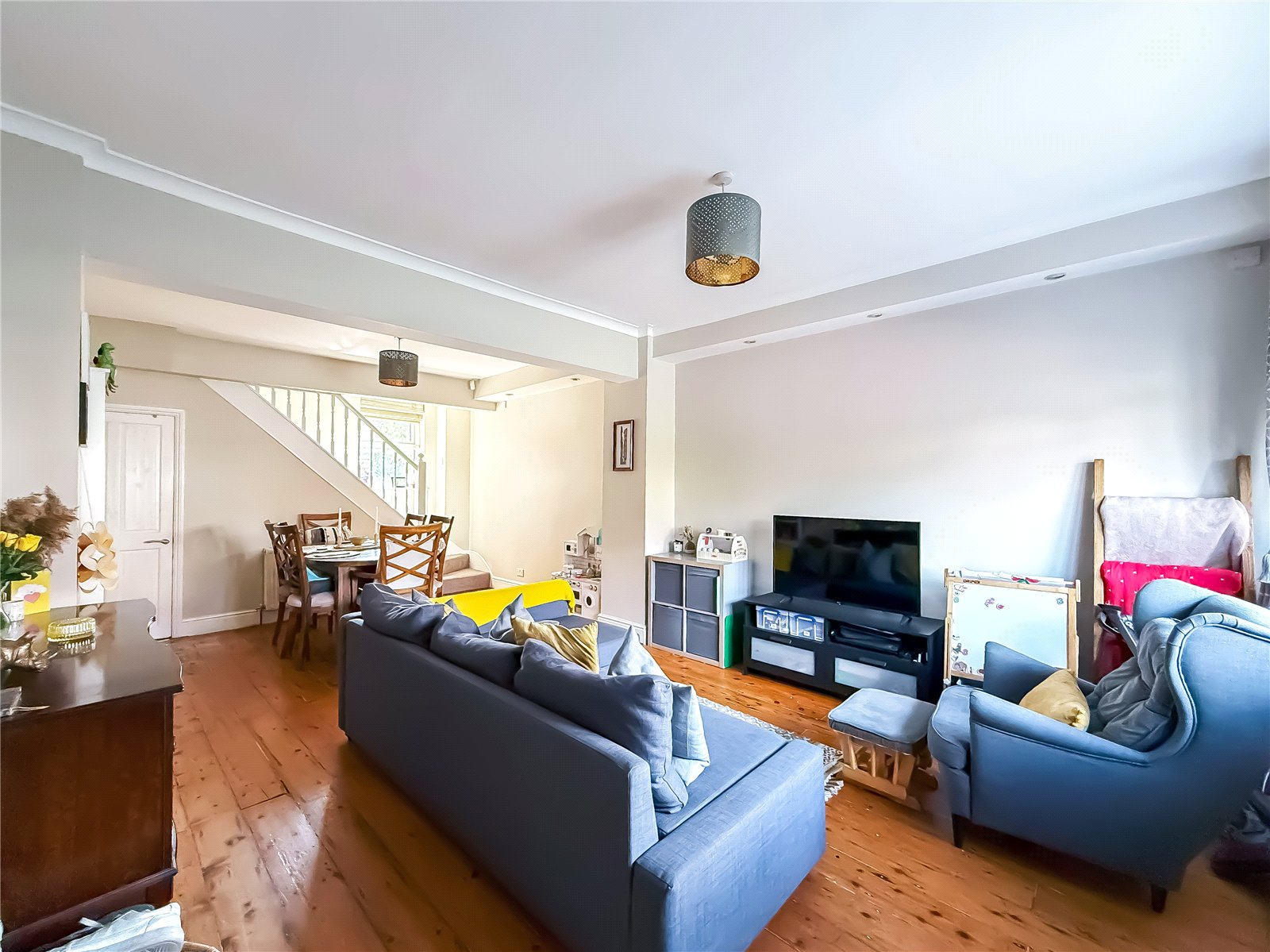 The accommodation consists of a bright and spacious living room, opening seamlessly into the dining room, which provides ample space for a table and chairs. A further opening leads from the dining room into the modern kitchen, which is fitted with sleek modern units and integrated appliances. A door from the kitchen opens out onto the garden.