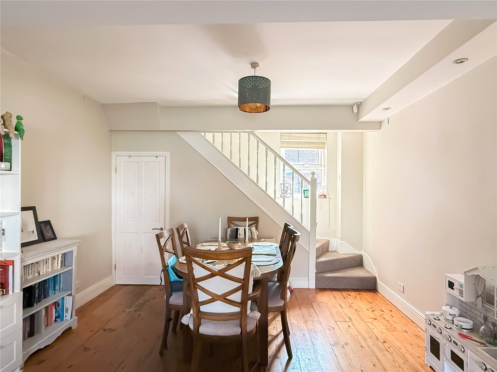 Stairs from the dining room, rise up to the first floor, which reveals two well-proportioned bedrooms. The property is served by a contemporary four piece bathroom.
