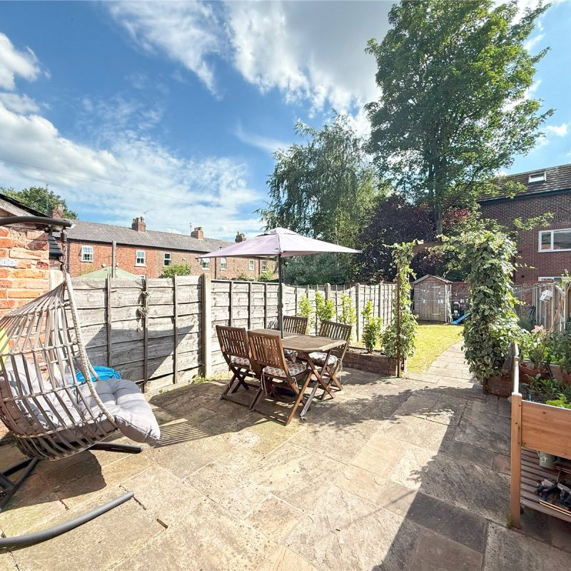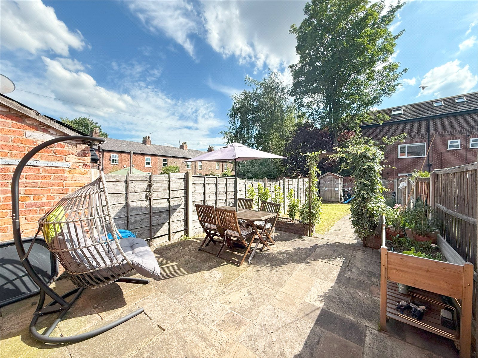 Externally, the property is approached via a paved pathway, with an area of garden running alongside. To the rear there is a wonderful South Westerly facing garden, with a paved patio creating an ideal space for entertaining, with an expanse of lawn beyond.