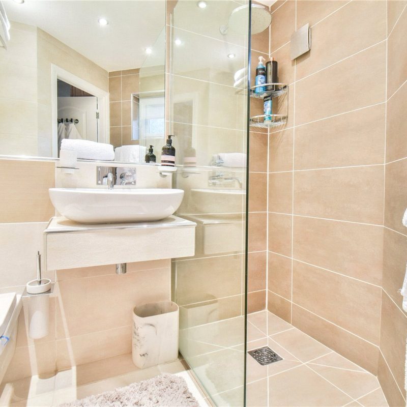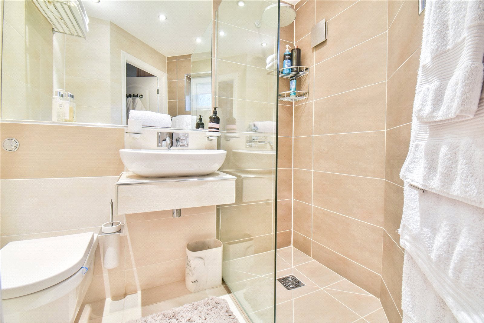 Stairs from the hallway rise to the first floor which reveals two further well-proportioned double bedrooms, both with bespoke fitted wardrobes, with the principal bedroom also benefitting from a modern en-suite shower room. The floor is further served by a stylish three piece bathroom. Both bathrooms feature underfloor heating.