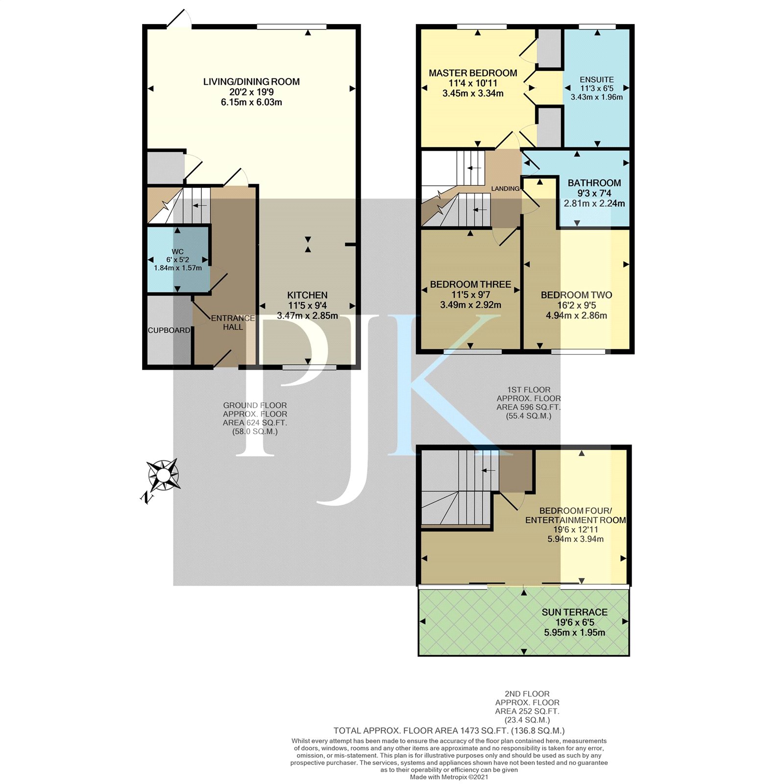 The first floor reveals three well proportioned bedrooms, including the impressive master bedroom which has fully fitted wardrobes and is served by a contemporary en suite shower room. In addition the other two bedrooms on this floor are served by the family bathroom, which provides a bath with shower, wash basin and W.C. To the top floor is a versatile bedroom or living space, with sliding patio doors which open onto the feature sun terrace, which has space for patio furniture and overlooks the attractive courtyard below.